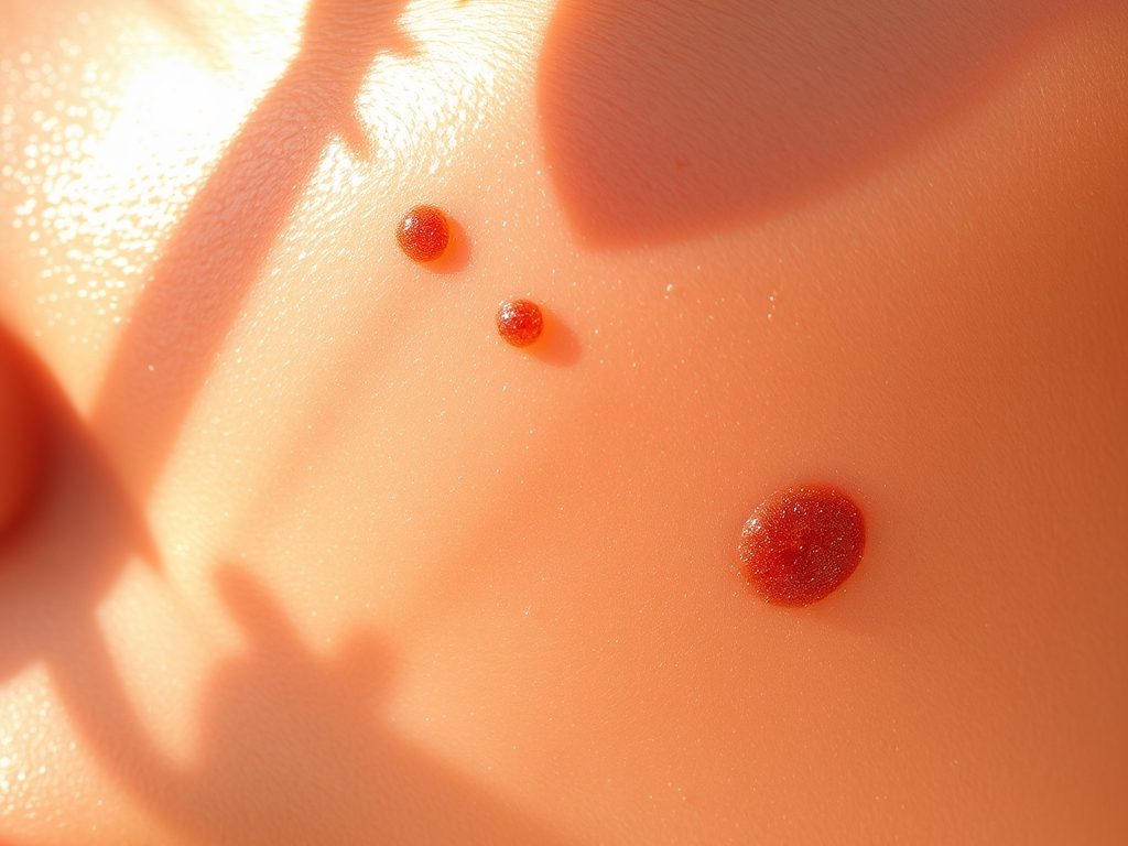 - lokalizację na odsłoniętych częściach ciała, takich jak twarz, dekolt, dłonie i ramiona